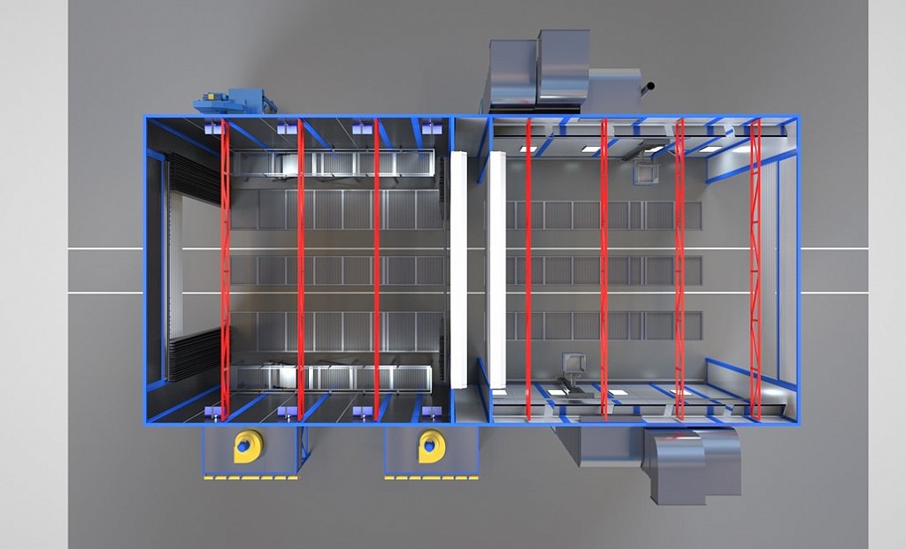 Данный комплекс включает в себя дробеструйную и окрасочно-сушильную камеры.