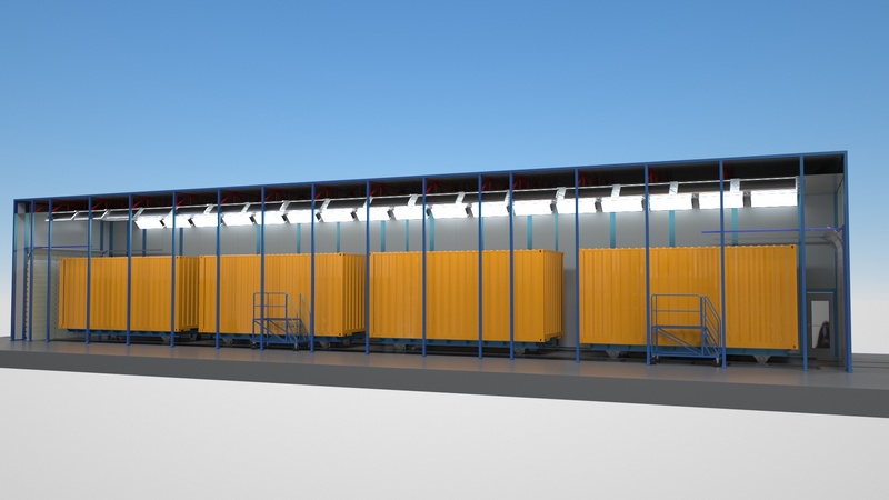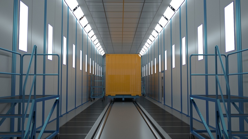 цена по запросуКамера окрасочно-сушильная USI Chronotech EPS 8х4х2.8 м с верхним, угловым и боковым освещением.