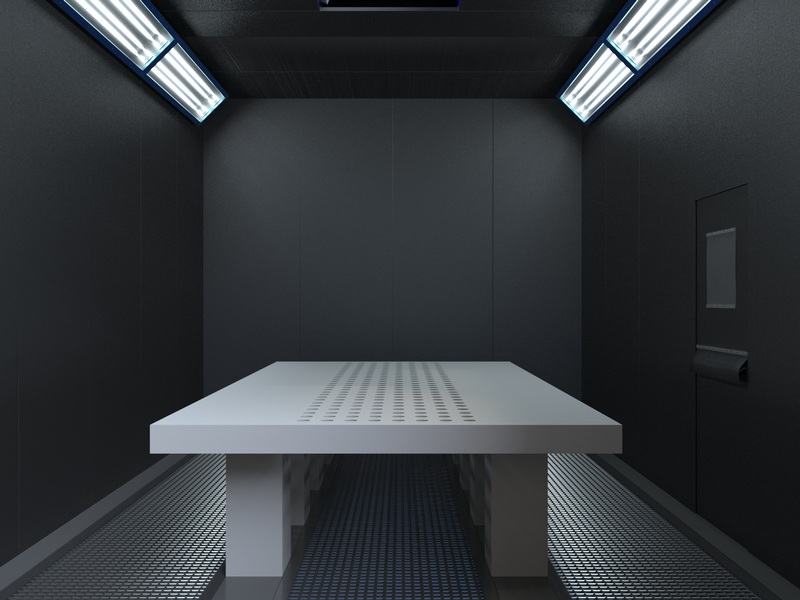 Система освещения в камере располагает 6 светодиодными светильниками. Эвакуационное освещение располагается отдельно над сервисной дверью.